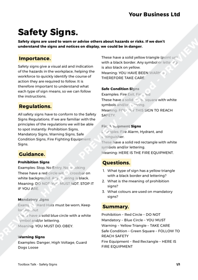 A safety and security meeting is a possibility to instruct proper methods and procedures that can prevent injuries from taking place, which can lead to losing money as a result of reduced efficiency.